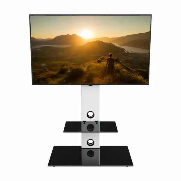 The Lesina TV stand is a great way to mount your TV while providing extra space to put all your A/V accessories. There is also an integrated cable management column that helps keep any cables tidy.