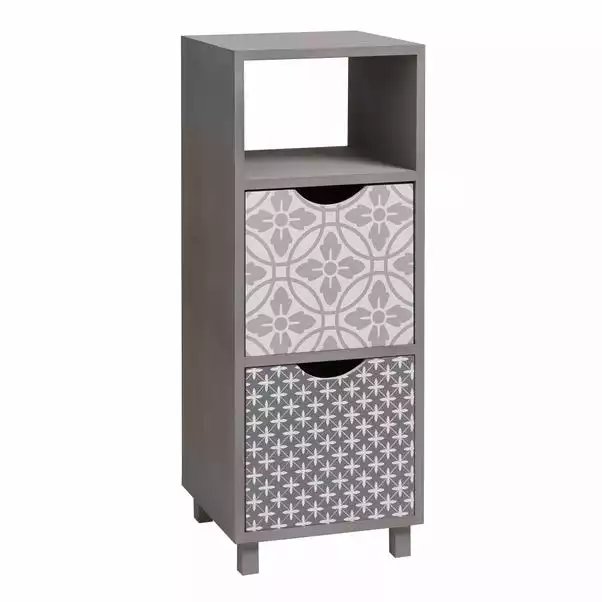 With a stylish global inspired geo design, this three tier two drawer unit is handy for storing away your bathroom accessories when not in use, without compromising style. Coordinate with our matching Geo Tile accessories.