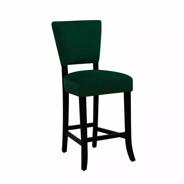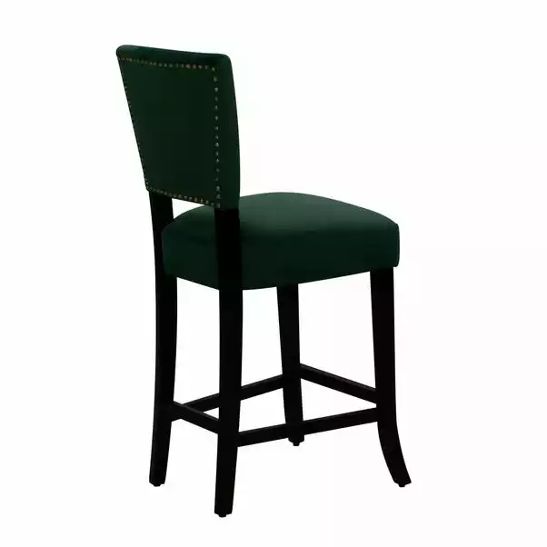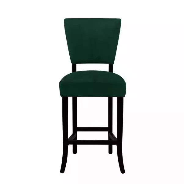 Serve up drinks and dinner to be enjoyed in style and comfort in the Hallie Bar Stool. The soft touch eco-velvet upholstery, studded back detailing, and wooden legs brings an elegant look to your space that will have you and your guests wanting more.