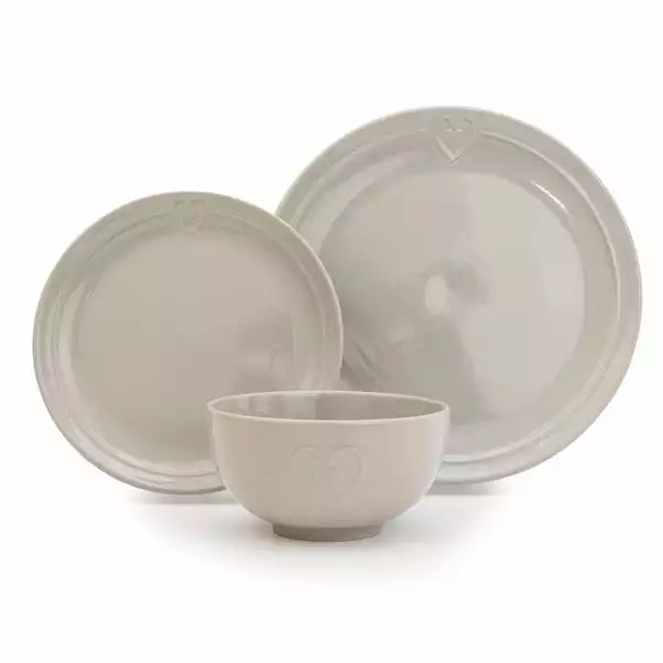 Dunelm Hearts Grey 12 Piece Dinner Set