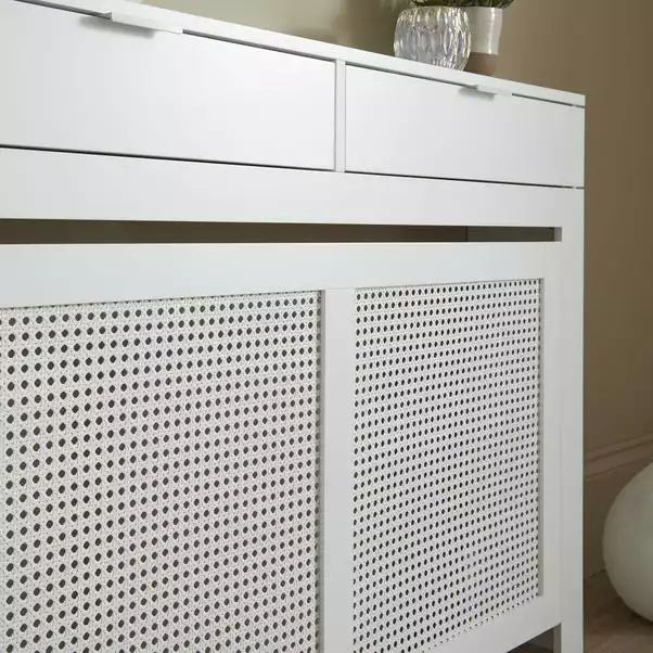 This radiator cover makes a stylish and practical addition to your living space, featuring a trendy rattan front with sleek satin surround. The Palermo radiator cover is also practical and functional, with the two drawer panels on top for additional storage. Perfect for creating a superb focal feature and creating a protective barrier against the hot surface.