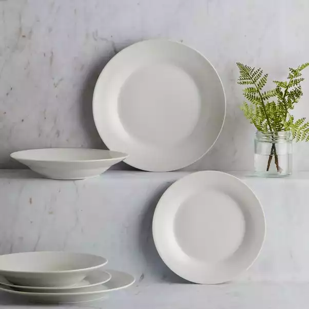 Made from durable porcelain, this simplistic yet stylish 12 piece dinner set boasts a modern white gloss finish and is dishwasher and microwave safe for added convenience. Complete with four bowls, four side plates and four dinner plates, this white rim dinner set is suitable for everyday dining and will complement all types of dining table settings.