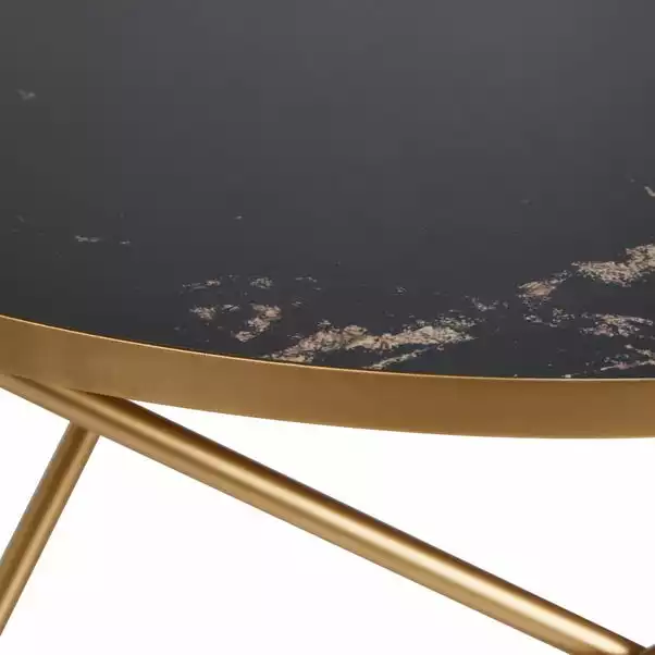 The Zoey Black Marble Effect Coffee Table is the perfect addition into any home and is sure to elevate the look of your living area. Boasting a gorgeous marble effect top and finished with gold finish hairpin legs, this coffee table has a modern and stylish look that is ideal within a contemporary home.