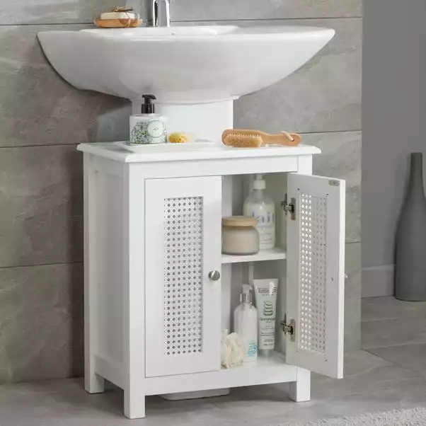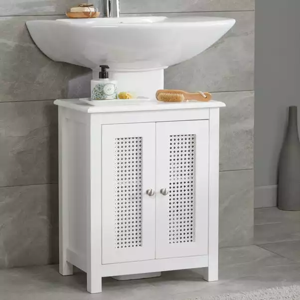 Featuring stunning cane detailing, this under-sink unit is ideal for adding storage space to your bathroom. With ample storage space, you can store all your bathroom essentials neatly using this unit.