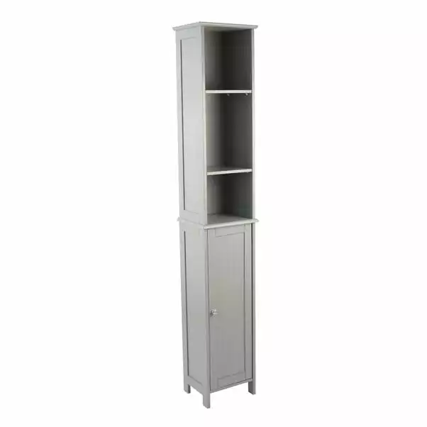 With a contemporary grey finish, this tall cabinet features 6 shelves; three open and three behind a hinged cupboard door. Ideal for storing and displaying your bathroom accessories and essentials, this cabinet brings you a stylish storage solution that takes up little floor space due to its tall, slim design.