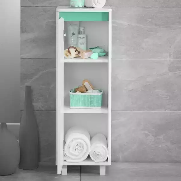 Boasting a crisp, clean satin finish, this Vienna Floor Cabinet is ideal for keeping your bathroom neat and tidy. Made from durable MDF and with sturdy metal legs, this cabinet is strong, versatile and easy to assemble. This sleek unit features ample storage space and shelves inside so you can organise all your bathroom essentials easily. This cabinet features a unique reversible colour bar system that allows you to personalise the aesthetic depending on which room you’d like it to feature in or whenever you redecorate. This item can be coordinated with other items from the Vienna Range.